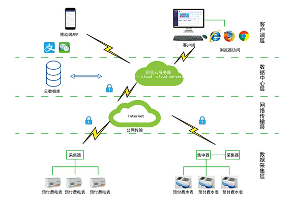 對于分布不同省、地市或同地市不同區(qū)域的連鎖商業(yè)、集團(tuán)、百貨、門店、物業(yè)、院校等業(yè)務(wù)分散,要求集中管理、線上支付,低額提醒、欠費(fèi)告警。但常規(guī)的本地插卡付費(fèi)、本地預(yù)付費(fèi)并不能完全滿足客戶管理需求,預(yù)付費(fèi)云平臺應(yīng)運(yùn)而生。AcrelCloud-3200水電預(yù)付費(fèi)云平臺無縫集成商業(yè)、物業(yè)公司、集團(tuán)企業(yè)、院校等分散布置的安科瑞DDSY/ADF系列電子式預(yù)付費(fèi)電能表、閥控智能水表等,提供微信、支付寶、銀聯(lián)等可選的在線支付方式,大大方便了用戶充值、圈存,提供預(yù)警和充值、退費(fèi)、電能消耗等記錄查詢,方便用戶和管理方的數(shù)據(jù)統(tǒng)計和財務(wù)分析,提供先交費(fèi)后使用的管控機(jī)制,大大降低了管理部門的收費(fèi)成本。